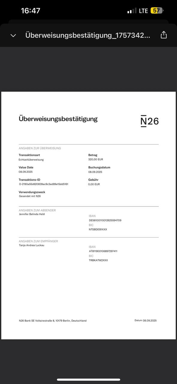 Hallo! Ich habe eine Anzahlung von 10€ geleistet.